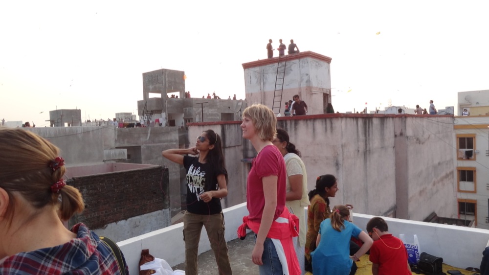 Agnès hat uns netterweise mit dazu gepackt, da sie bei einer Inderin der Alliance Française in der Altstadt von Vadodara eingeladen war. Esha und ihre Familie hat uns ganz nett empfangen und sogleich mit aufs Dach genommen. Alle Einwohner von Vadodara treffen sich an diesen zwei Tagen auf den Dächern der Häuser und lassen ihre Drachen steigen: